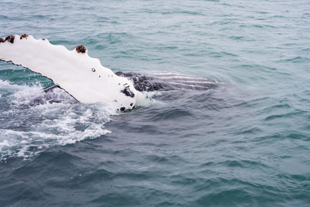 Faszinierend anders ist auch die Tierwelt. Wild haben wir nie gesehen, nur ein einziges mal Rentiere in der Ferne und einmal hautnah auf einer Auffangstation. Absolut toll ist dafür das Leben am und im Ozean. Der Reichtum an Wasser- und Seevögeln muss zur Brutzeit und im Sommer enorm sein; dafür – etwa die beliebten Puffins (Papageientaucher) – waren wir wohl zu spät dran. Und dann natürlich Fische und Meeressäuger wie Robben und Wale. Um Island herum leben fast alle Walarten, Delfine, Zwergwale, Orcas, Buckelwale, Finnwale, sogar Blauwale. Weil die Tiere nah an die nährstoffreichen Küstengewässer kommen, ist es gar nicht so unwahrscheinlich, einige live zu Gesicht zu bekommen. Allein in Husavík konkurrieren fünf Anbieter um die Gunst zahlungskräftiger Kunden. Außerdem starten Boote in Akureyri, Isafjörður, Reykjavík und so fort. Wir haben uns für einen kleineren Anbieter in Husavík entschieden, der die Tiere nicht mit Schnellbooten bedrängt. Unsere Wa(h)l wurde belohnt: Wenn plötzlich ein Buckelwal direkt vor dem Schiffsbug auftaucht, bläst, das Maul zum Plankton und Krill ernten öffnet und dann mit einer winkenden Schwanzflosse abtaucht, ist das ein irres Glücksgefühl. Wunderschöne Schöpfung!!!