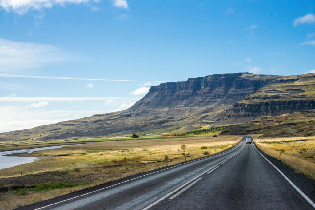 Zugleich fahren fast alle enorme Autos – groß, geländegängig, meist Hybrid. Manche Fahrzeuge sind die reinsten Monstertrucks, und zwar vom PKW über den Camper bis zum Bus. Das ist auch dringend notwendig, denn das Straßennetz ist nur rudimentär. Über den gut ausgebauten Hringvegur / Ringstraße (Nr.1) kann man zwar die Insel gut umrunden. Biegt man aber ab und werden die Straßen zwei- oder gar dreistellig, wird es rasch ungemütlich. Auf den F-Roads geht ohne 4×4 gar nichts, und auch da sollte man rückentechnisch nicht empfindlich sein. Dennoch haben wir das mit unserem Hyundai Tucson 4×4 natürlich ausprobiert und wurden auf diesen Touren abseits der Touristenpfade mit gigantischen Ausblicken auf Gletscher und Vulkanwüsten belohnt.